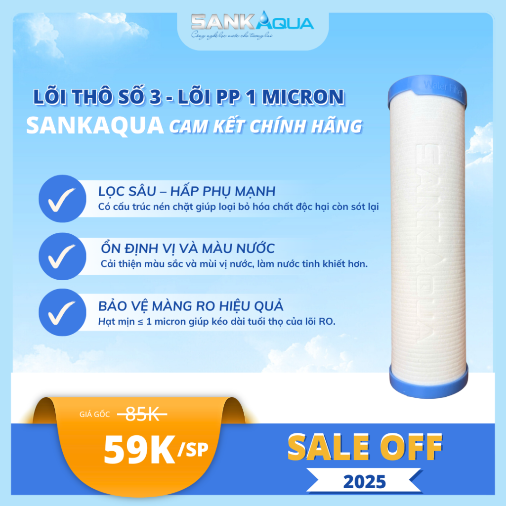 Với trâm ngôn: “Công nghệ nước sạch cho tương lai” , Sankaqua lcam kết cung cấp các sản phẩm lõi lọc chất lượng cao cùng dịch vụ tư vấn và thay thế tận nhà, hỗ trợ khách hàng bảo hành trong quá trình sử dụng!